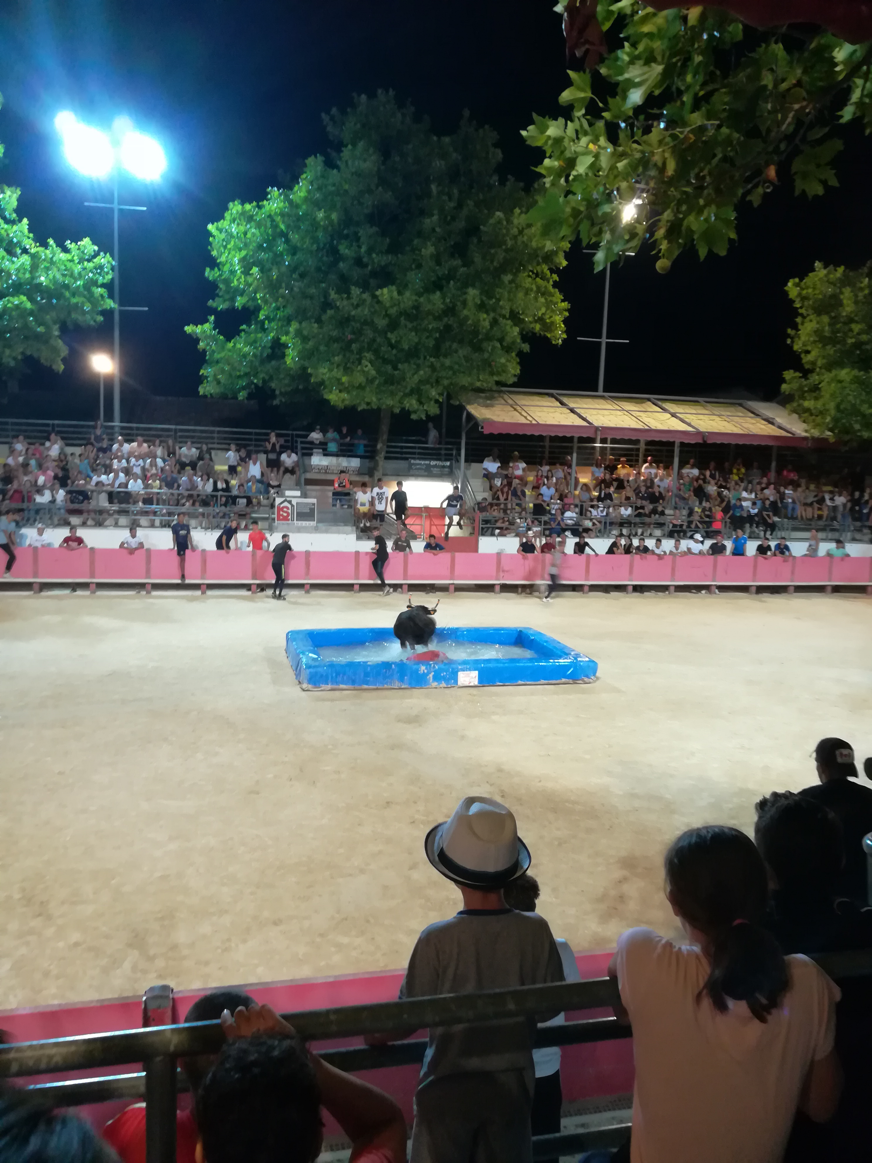 Prix abordable(gratuit -10 ans 5€ adultes)et spectacle au rendez-vous pour le toro piscine et les gradins sont assez confortable. Pas de soucis pour une petite sortie en famille.