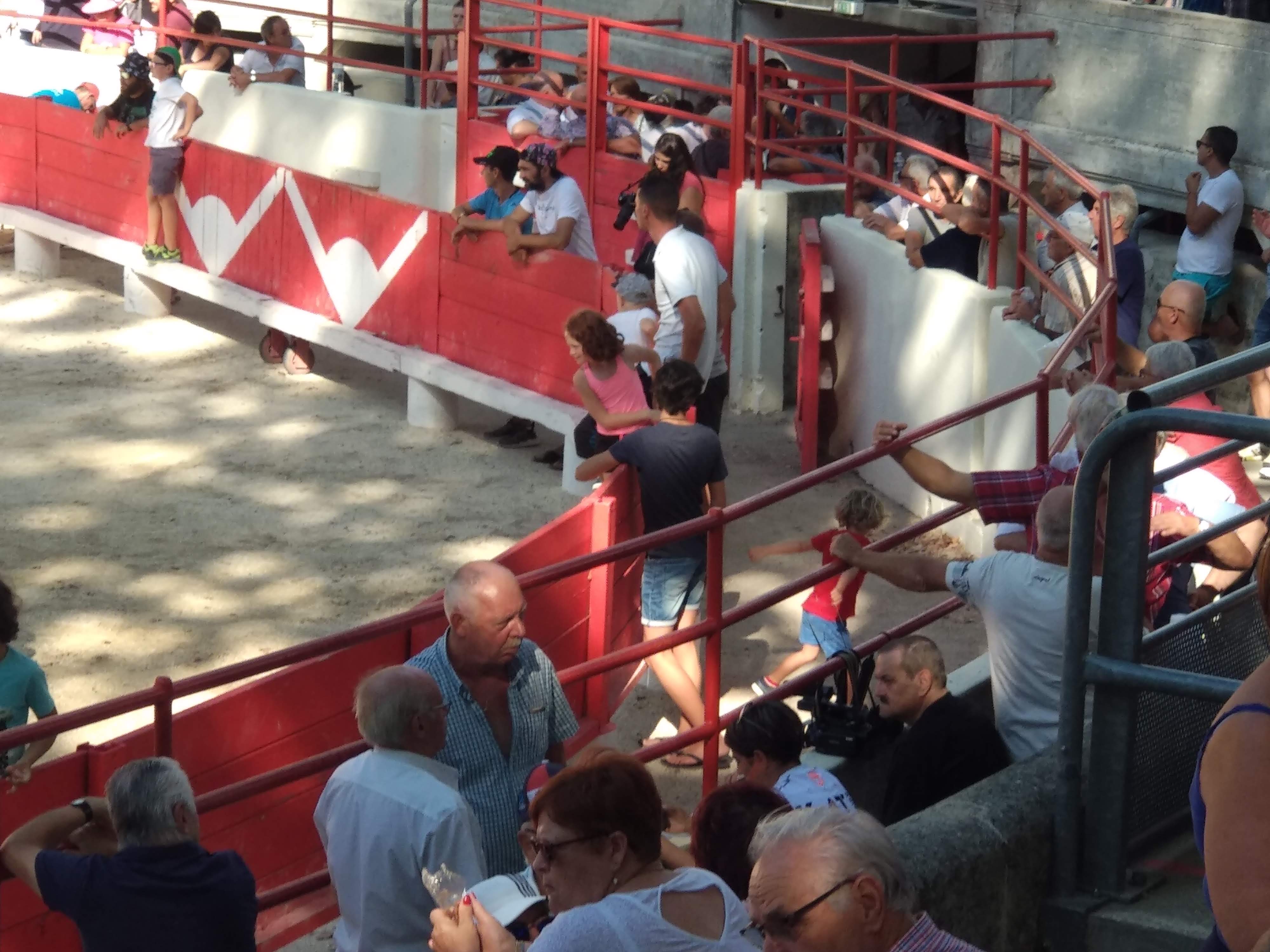 Top ambiance dépaysante. Respect de l'animal, car pas de blessure infligée au taureau. Un conseil prenez un petit coussin et placez vous à l'ombre.😉😎