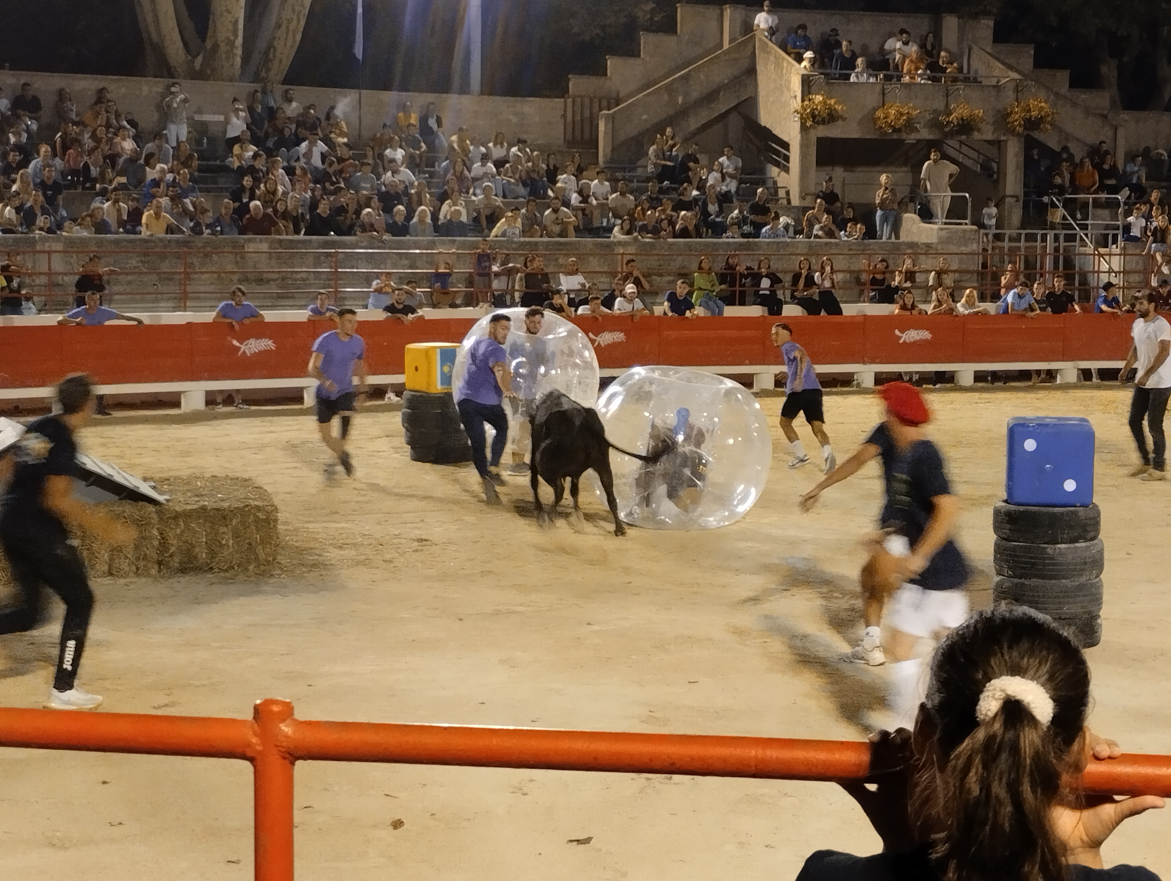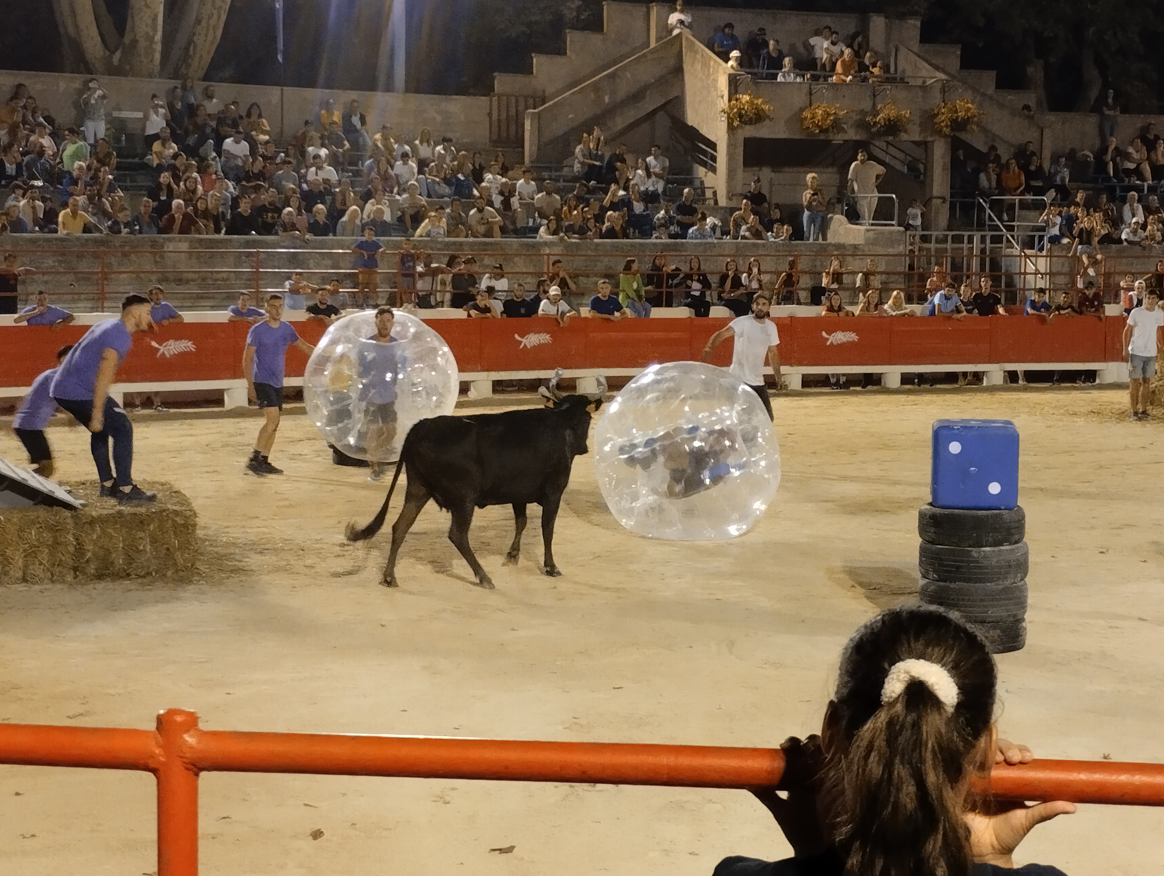 Le spectacle du samedi soir a été une surprise agréable et inattendue : le taureau dans la piscine ! Bonne organisation et sécurité du public