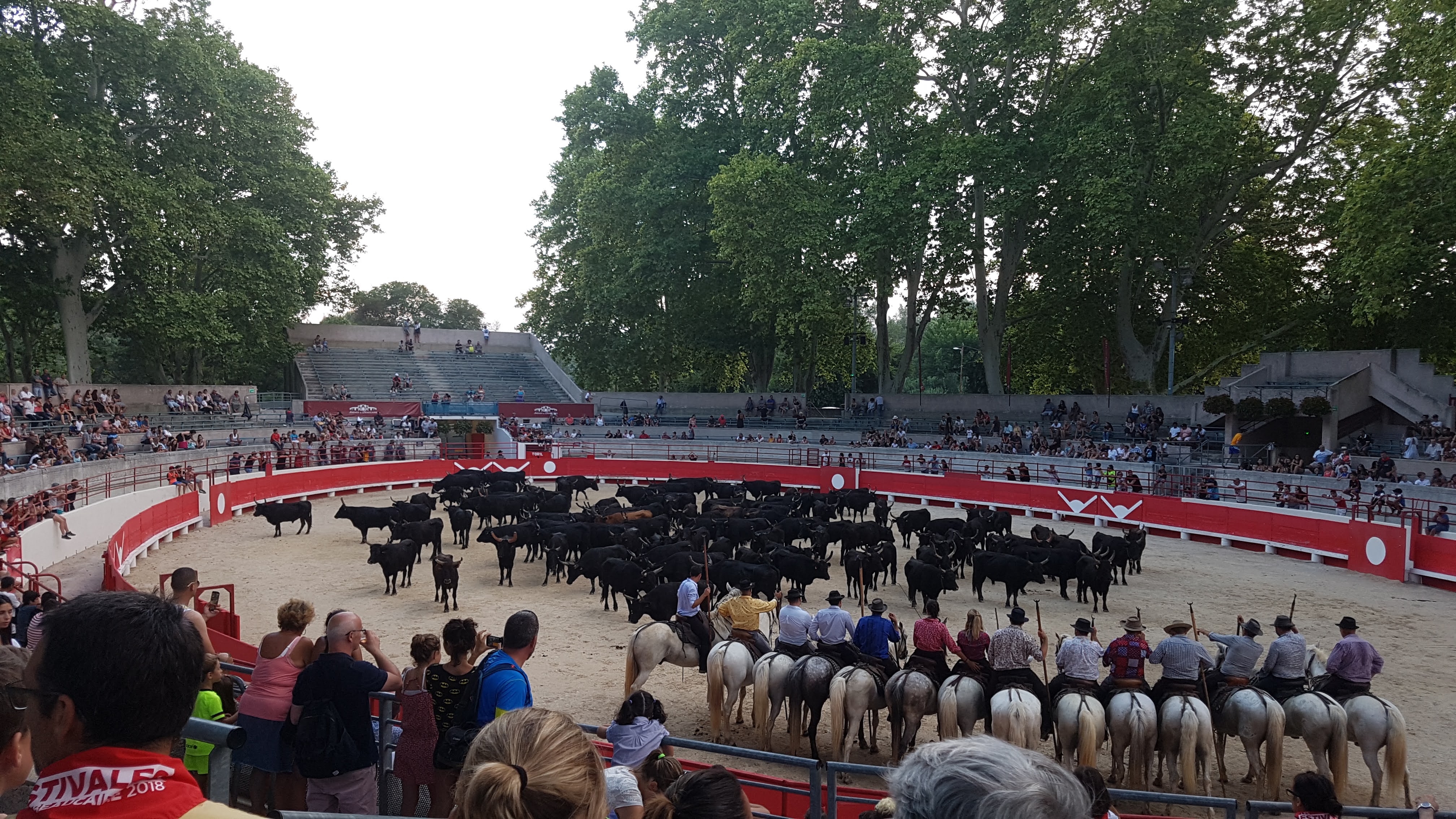 Nous avons vu les 100 taureaux, la course des taureaux, les abrivados et bien sûr les taureaux de billard, nous avons passé un très bon moment cependant, il vaut mieux prendre un petit coussin si vous le pouvez. Sièges très durs.