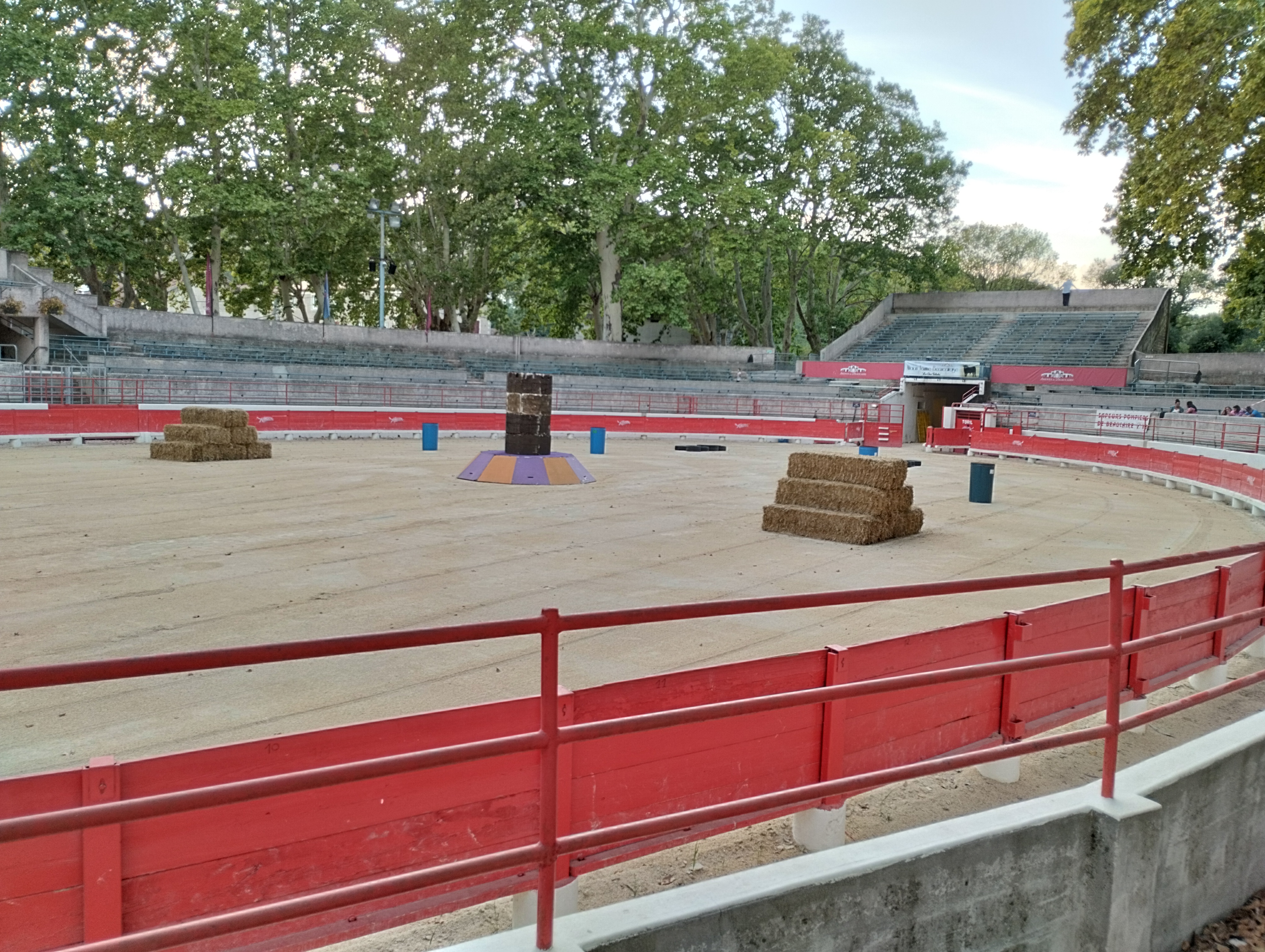 Très belle arène, ombragé, du parking facile, seul hic dès banc pas forcément en très bon état par endroit.
