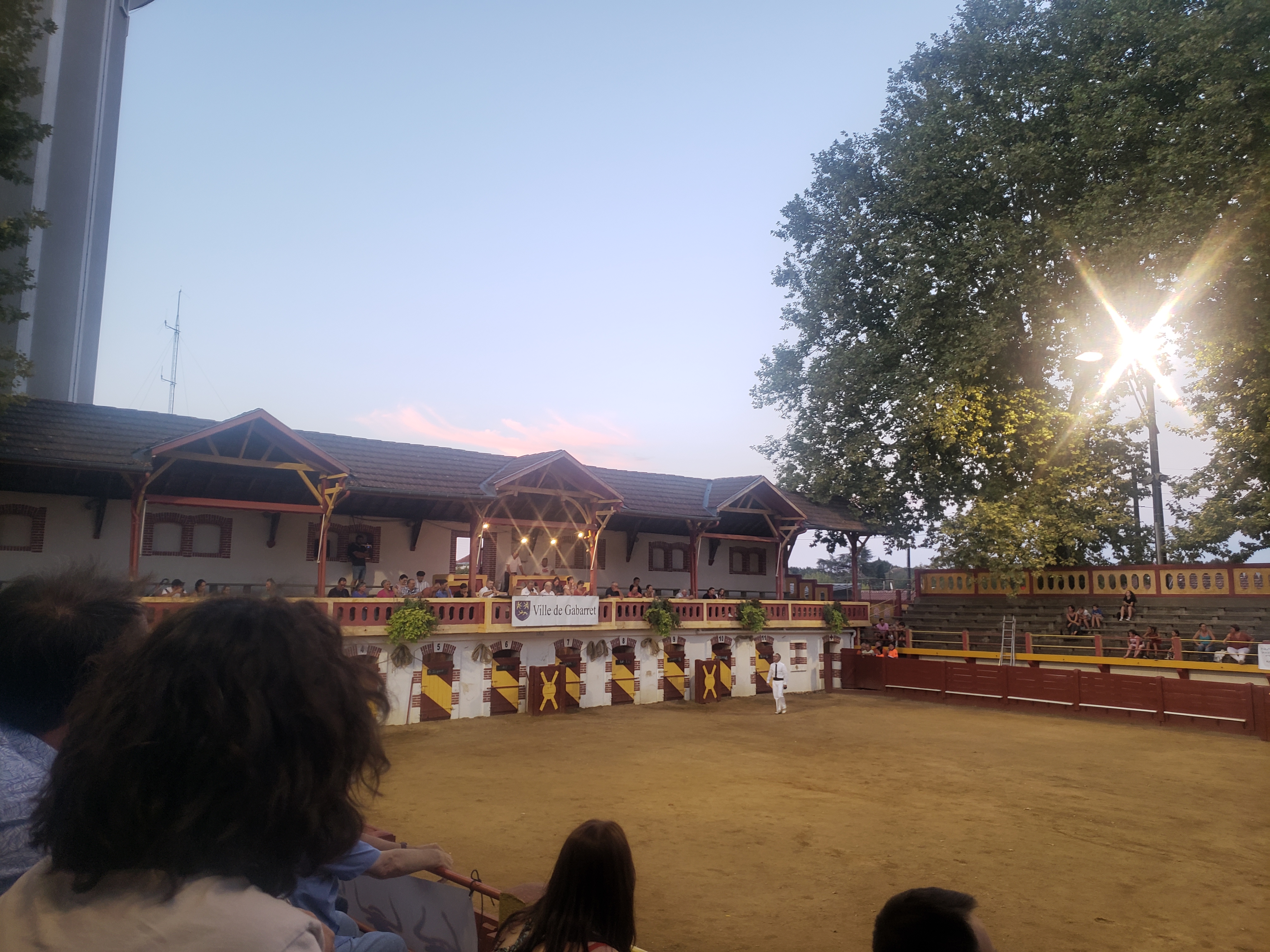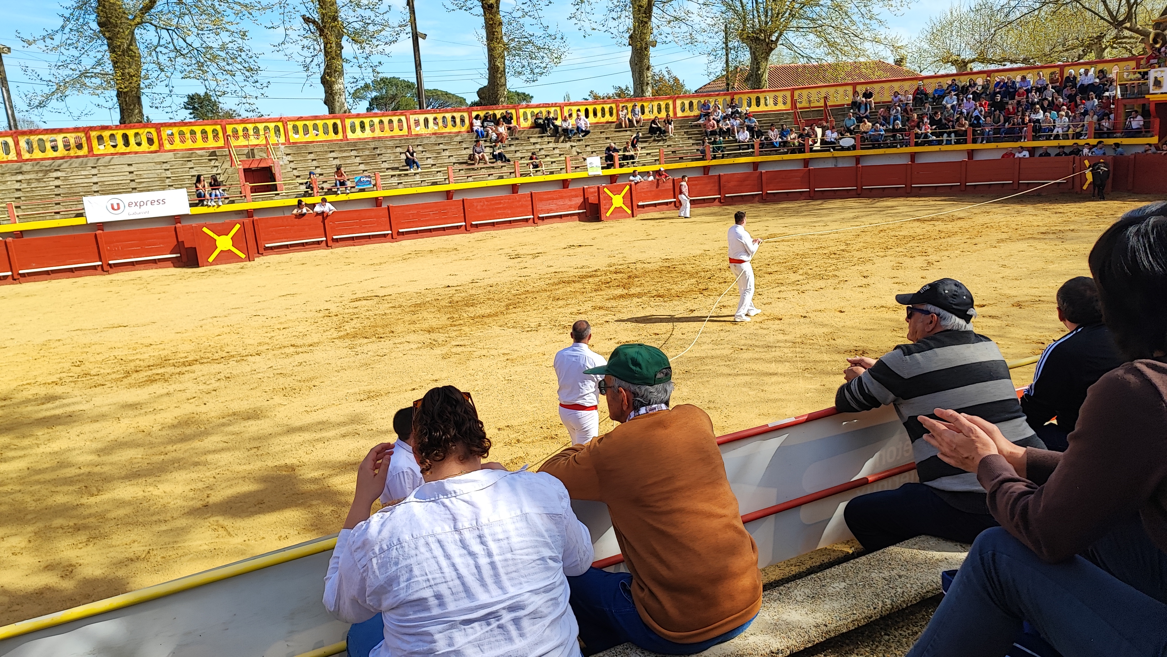 Samedi dernier c'était démonstration de courses Landaises....par curiosité nous y sommes allés et quel beau spectacle, même si j'ai frémis à certains moments délicats pour ces courageux hommes dans l'arène... globalement j'ai compris qu'il n'y avait ni morts d'hommes ni morts des vachettes, c'est un jeu traditionnel et je l'ai apprécié à ce titre, n'étant pas de la région. C'était la première fois que j'étais assise dans une arène et pas déçue... merci messieurs pour ce spectacle qui manquait cependant de femmes face aux vachettes 😉