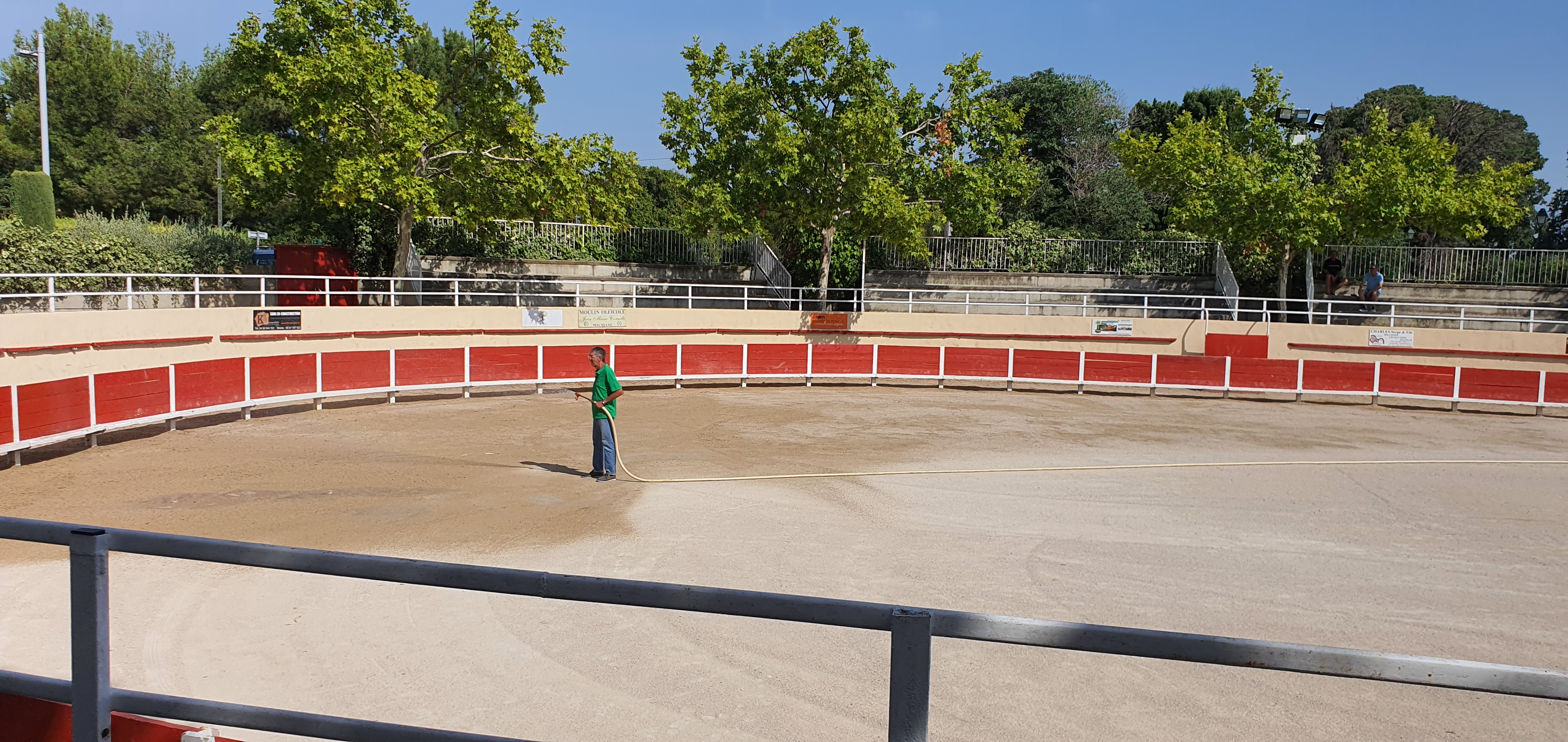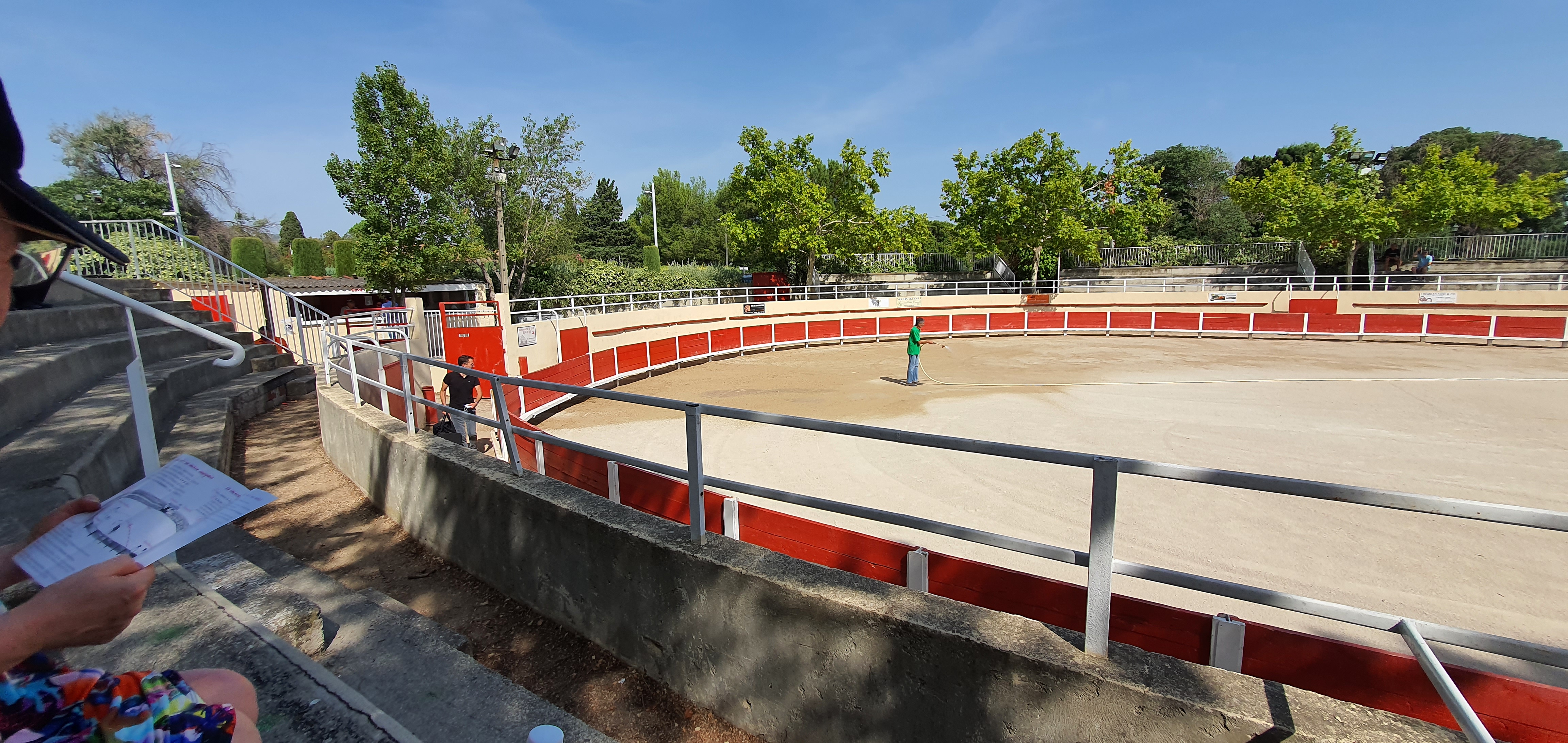 Arène à taille humaine, un peu abritée sur le côté droit en rentrant