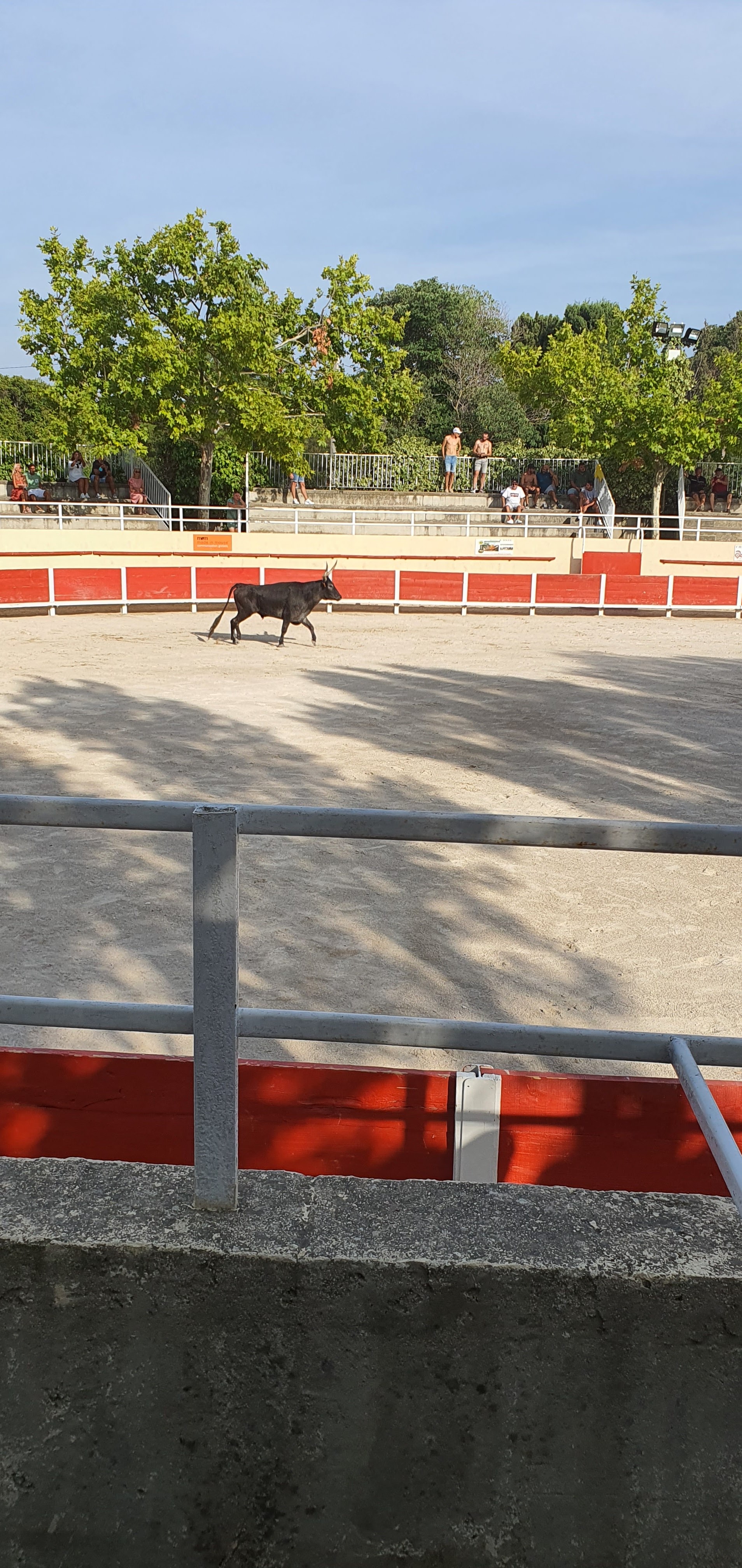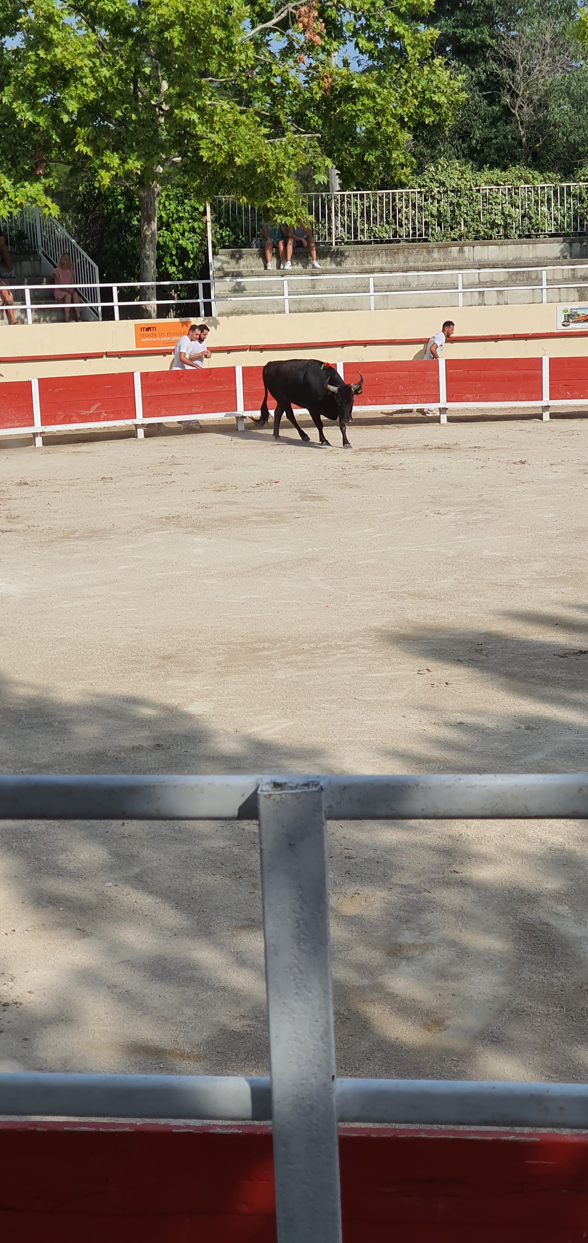 Course de taureau à la cocarde,magnifique 6 taureaux et 8 razeteur 6 courses de 15 minutes Les taureaux sont majestueux. C est à voir En plus c était pas cher 10 euros