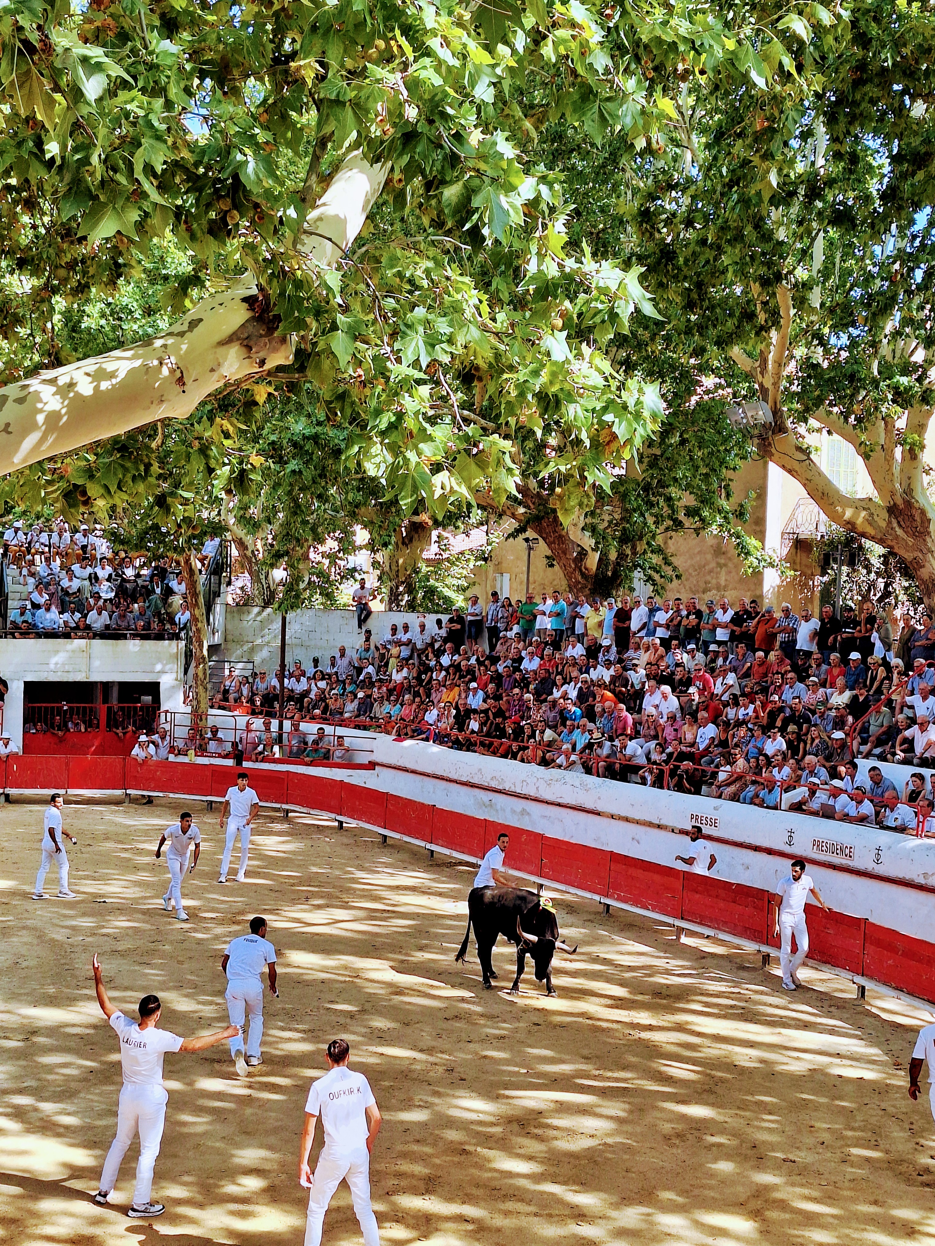 Arènes ombragées les membres du cub taurin sont sympa et toujours de bonnes courses de taureaux ...
