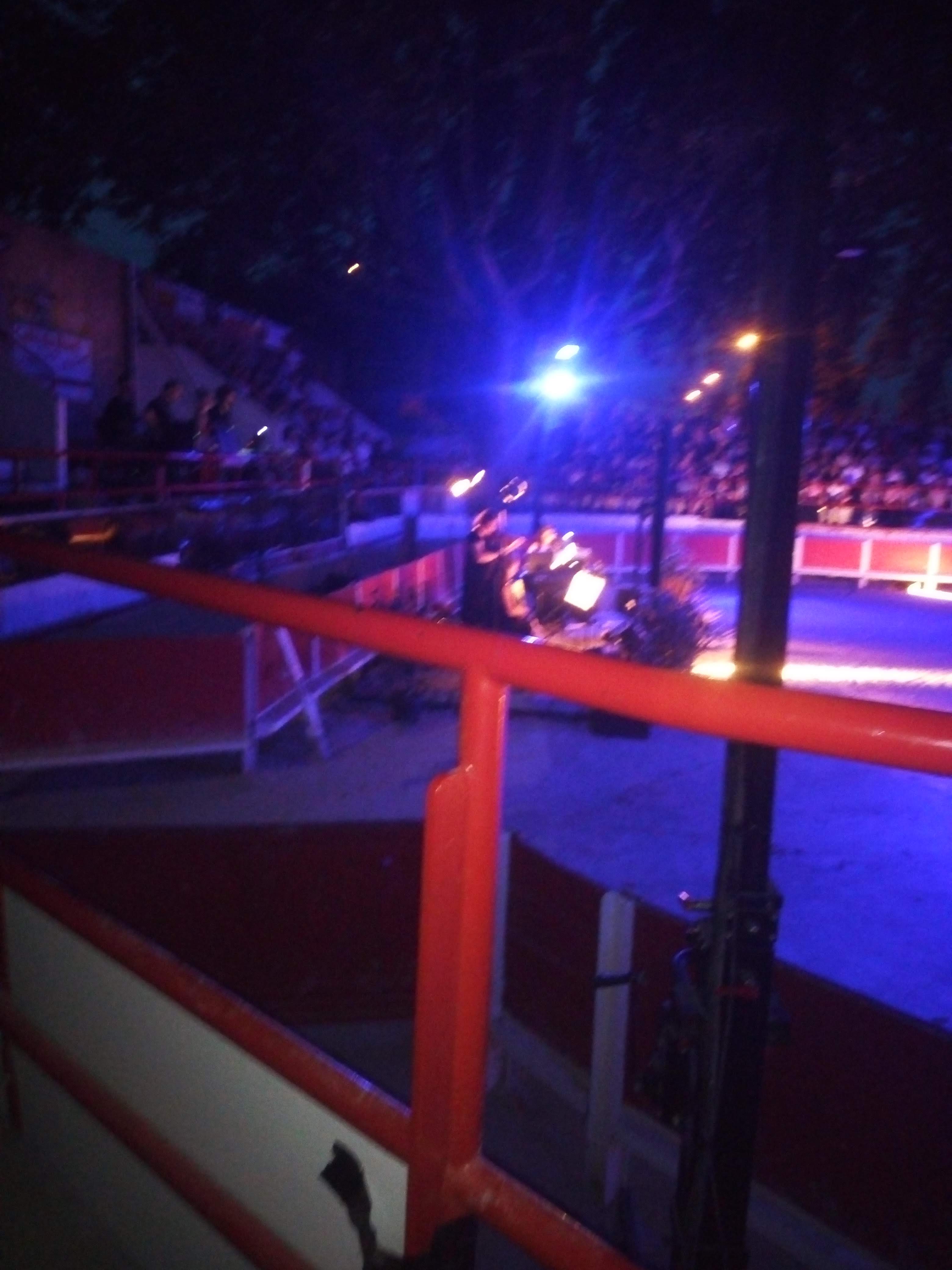 Petite arène conviviale (pas de mise à mort des taureaux)