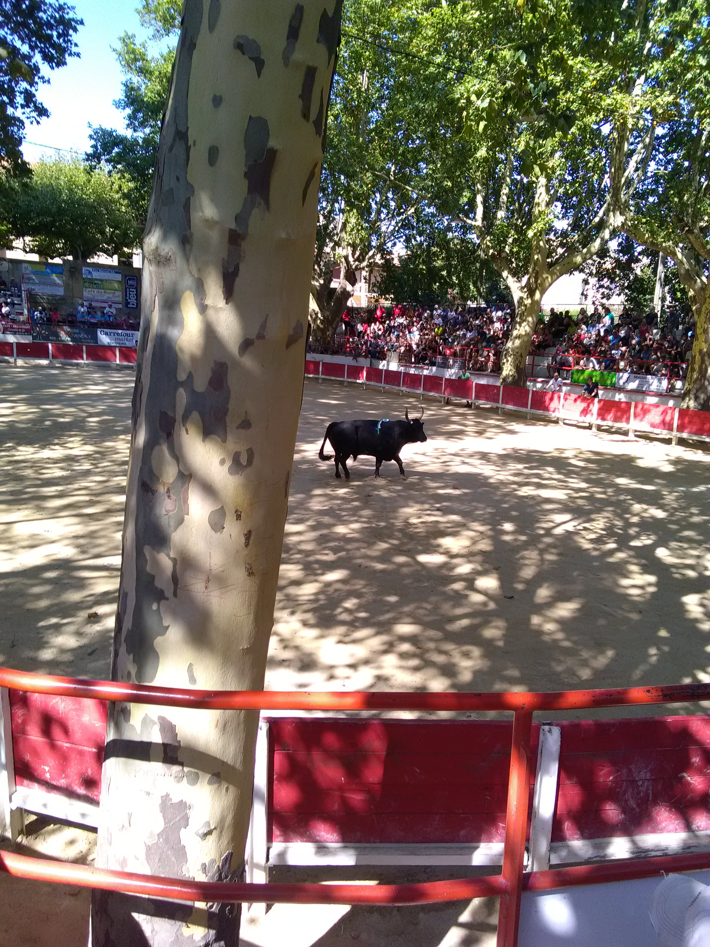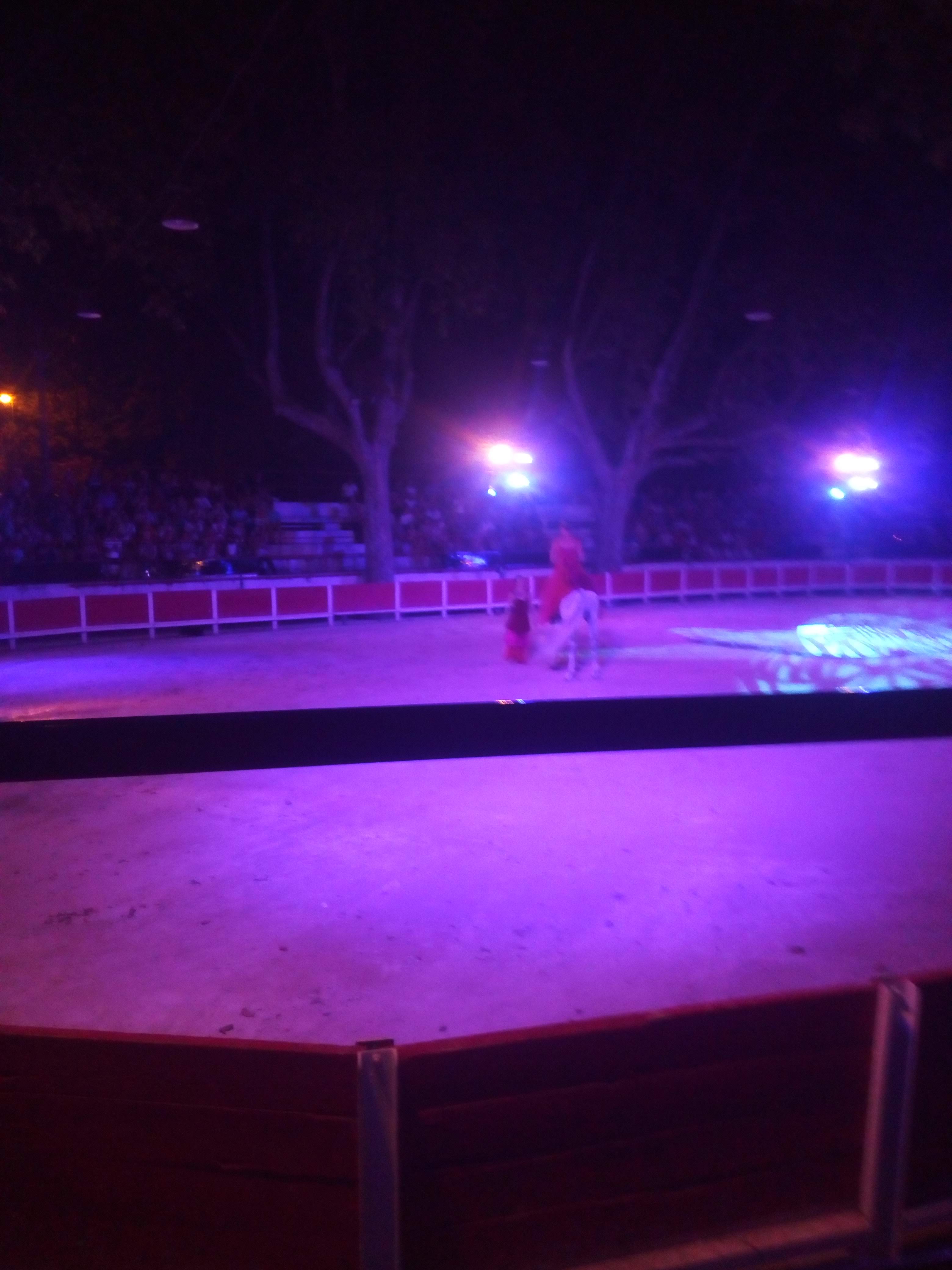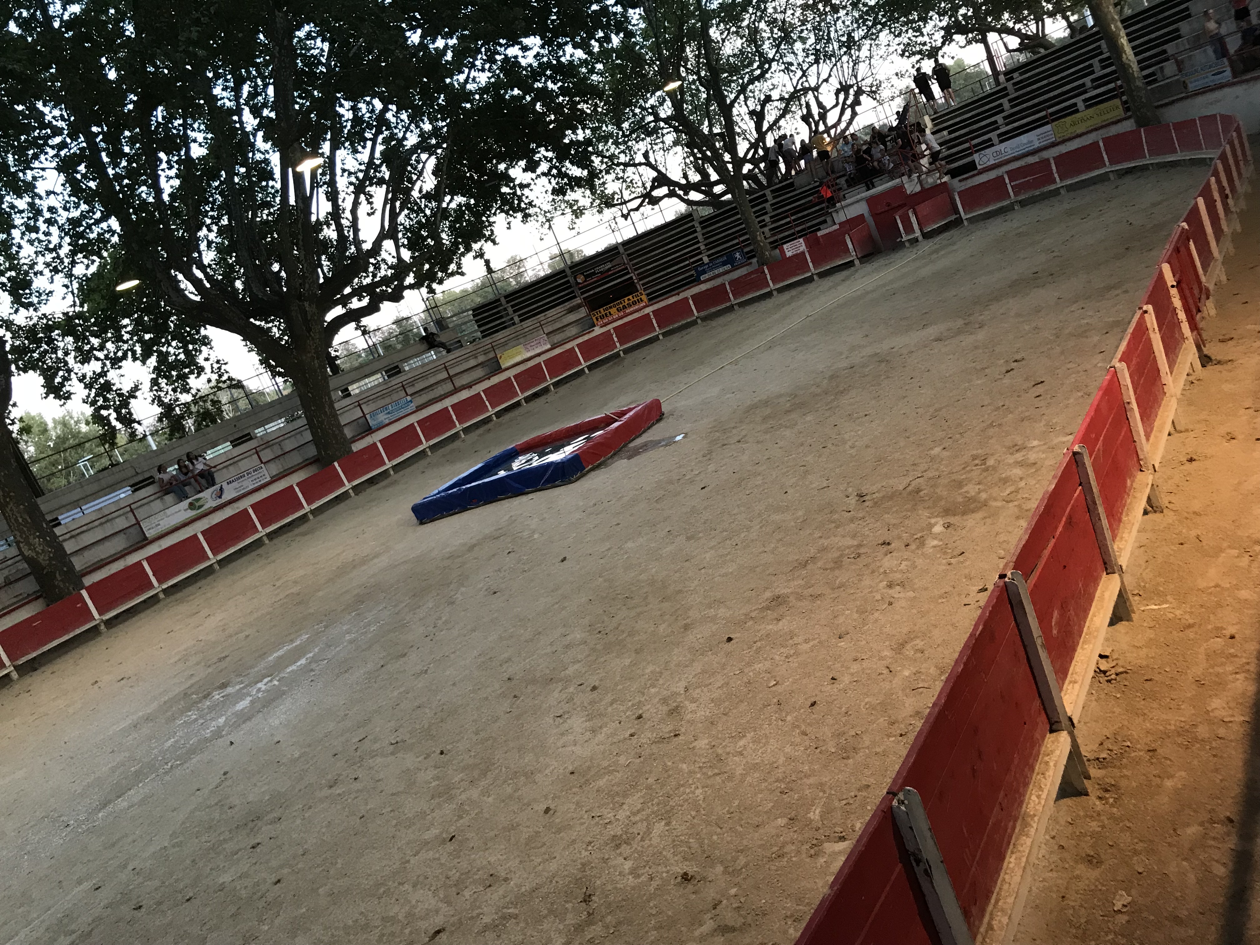 Belles petites arènes bien ombragées. On est à proximité des taureaux et des coureurs. En pleine fête de votive qui est une grande découverte pour nous c’était une jolie course camarguaise. Petit bémol le parking est pas en bon état il y a pleins de gros trous surtout à l’entrée… très poussiéreux par ceux qui ont des 4x4 roulent vite.